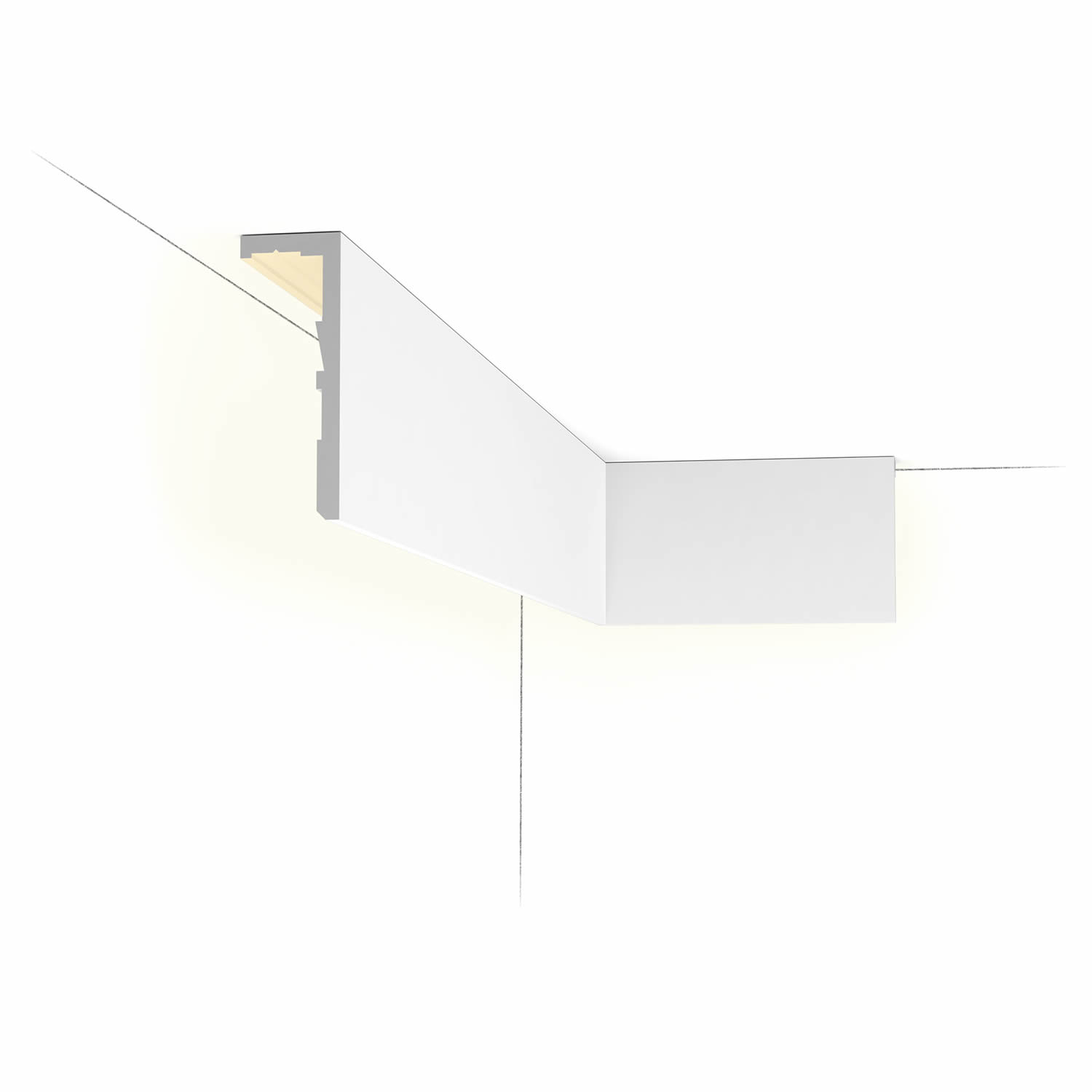 Die Stuckleiste CX216 Ledge in der Länge von 260 cm überzeugt als intelligentes L-Profil, das vielseitig in modernen Innenräumen eingesetzt werden kann. Sie dient als elegante Vorhangverblendung, als Träger für indirekte LED-Beleuchtung oder als klassisches Gestaltungselement im oberen Wandbereich. Darüber hinaus eignet sich die CX216 hervorragend zur diskreten Abdeckung von unschönen technischen Installationen wie Rohren, Leitungen oder Vorhangschienen. Mit einer Höhe von 12,5 cm und einer Breite von 4,5 cm bringt sie eine kraftvolle Präsenz in jeden Raum, ohne aufdringlich zu wirken. Hergestellt aus hochwertigem Duropolymer, vereint sie Stoßfestigkeit, Wasserresistenz und Langlebigkeit mit einem modernen, minimalistischen Design. Dank ihrer Grundierung kann sie direkt nach der Montage überstrichen und an das jeweilige Raumkonzept angepasst werden. Ihre einfache Installation ermöglicht eine schnelle Umsetzung sowohl im privaten als auch im gewerblichen Bereich. Besonders in Kombination mit Beleuchtungslösungen schafft sie stimmungsvolle Lichtakzente und verleiht Räumen eine warme und stilvolle Atmosphäre. Als Teil der Ledge-Serie von Orac Decor ist die CX216-2600 in mehreren Größen erhältlich und kann je nach Raumhöhe und gestalterischer Anforderung ideal angepasst werden. Ihre durchdachte Form erlaubt eine Montage an Wand und Decke sowie die Kombination mit weiteren Zierprofilen. Die maximale zulässige Oberflächentemperatur liegt bei 65 Grad Celsius, was bei der Einbindung in Beleuchtungskonzepte berücksichtigt werden sollte. Für beste Ergebnisse empfiehlt sich eine sorgfältige Vorbereitung mithilfe der Orac-Installationshinweise.