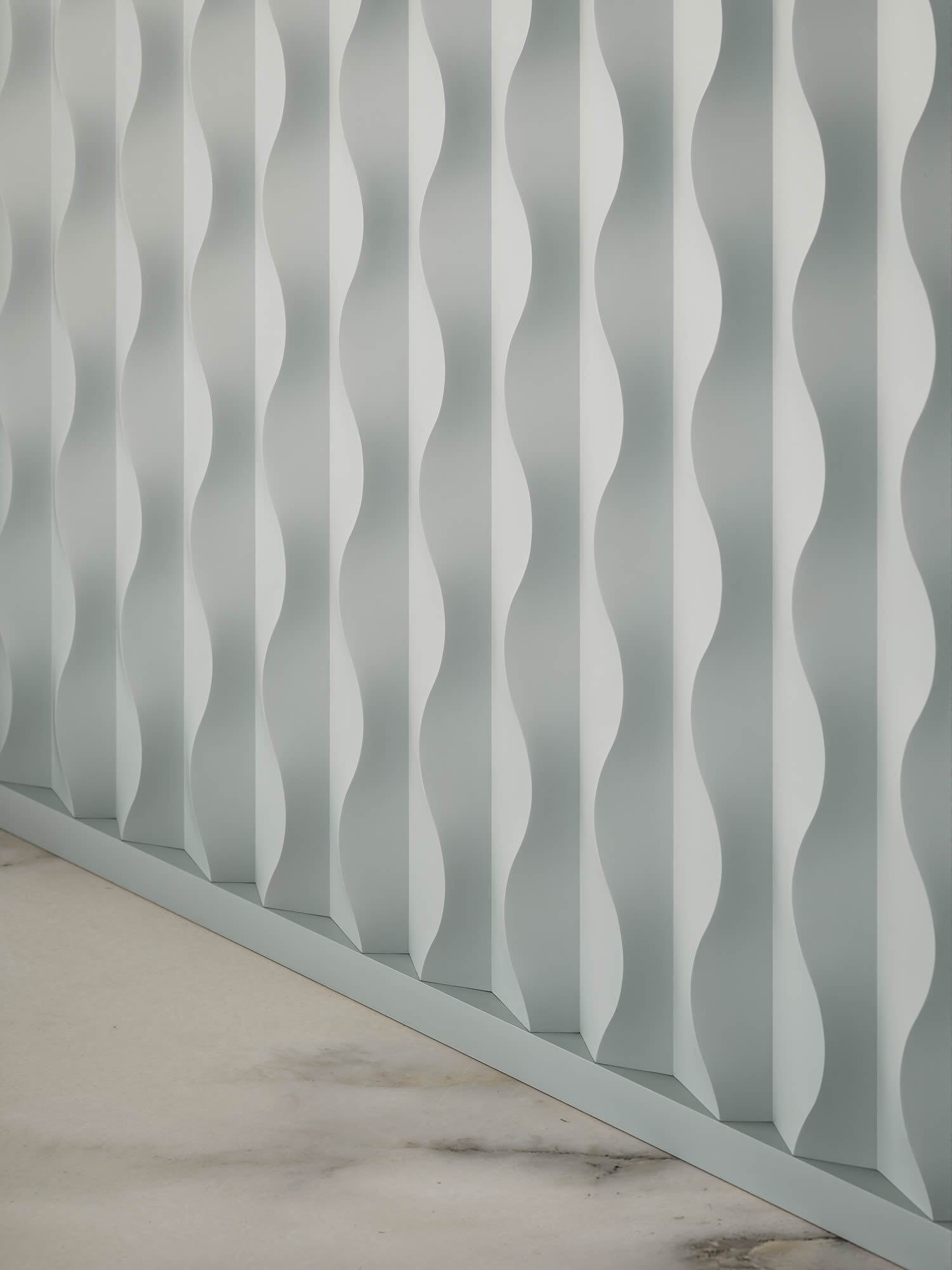 Das Wandpaneel W219 Zea mit einer Länge von 200 cm und einer Höhe von 250 mm ist ein kunstvolles Gestaltungselement für moderne Innenräume, das durch seine organische Formgebung und hochwertige Materialwahl überzeugt. Entworfen von der renommierten britischen Künstlerin Jan Erika, lässt sich das Design als eine Hommage an die natürlichen Bewegungen des Meeres interpretieren. Die wellenartige Oberfläche wurde von den Gezeiten dreier Meere inspiriert und spielt auf faszinierende Weise mit Licht, Schatten und Tiefe. Dadurch entstehen je nach Lichteinfall unterschiedliche visuelle Effekte, die dem Raum ein lebendiges, skulpturales Flair verleihen. Das Wandpaneel ist aus hochwertigem Purotouch gefertigt, einem stoßfesten, wasserabweisenden und langlebigen Material, das sich hervorragend für kreative Wandverkleidungen eignet. Die Paneele sind grundiert und können nach Wunsch individuell überstrichen werden, sodass sich nahezu jeder Farbwunsch umsetzen lässt. Durch die Kombination mehrerer Elemente können ganze Wandflächen gestaltet werden, die wie ein durchgehendes Kunstwerk wirken. Dank des geringen Gewichts und der einfachen Handhabung ist die Installation unkompliziert und auch für Renovierungsprojekte bestens geeignet. W219 Zea bringt eine einzigartige, zeitgenössische Ästhetik in Wohnräume, Büros, Hotels oder Empfangsbereiche – überall dort, wo besondere Akzente gesetzt werden sollen. Die klare Formsprache, verbunden mit der organischen Struktur, macht dieses Wandpaneel zu einem echten Highlight moderner Innenarchitektur. Für ein optimales Ergebnis empfiehlt sich die Beachtung der Herstellerhinweise zur Montage und Nachbearbeitung.