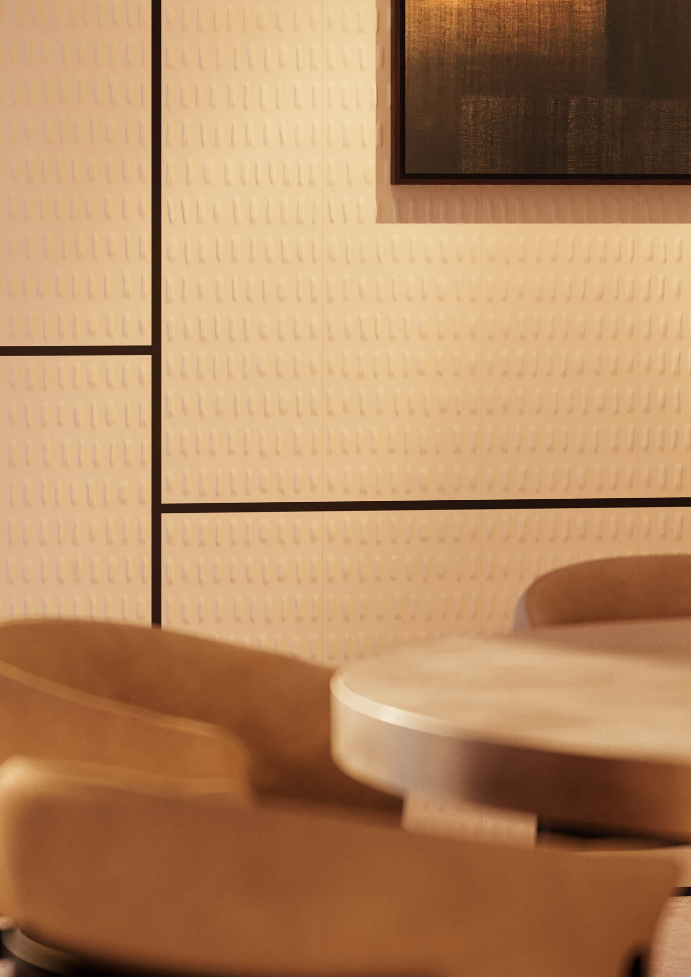The BOHEMIA ARSTYL wall panel by NMC is a modern design element that combines natural elegance with creative freedom. Designed by Bertrand Lejoly, it features soft organic lines that create a strong connection to nature. This surface clearly stands apart from classic geometric patterns and offers a refreshing alternative for unique interior designs. Combined with earthy colours, it helps to create a calm and welcoming atmosphere with subtle depth. The surface adds fine movement and brings soft texture to the walls. Made from high quality PU rigid foam, the panel is lightweight, impact resistant and easy to install. It is pre primed and can be painted in any colour of choice. BOHEMIA ARSTYL is suitable for living spaces, bedrooms or commercial interiors and offers versatile applications as wall cladding, feature area or modern decorative element.