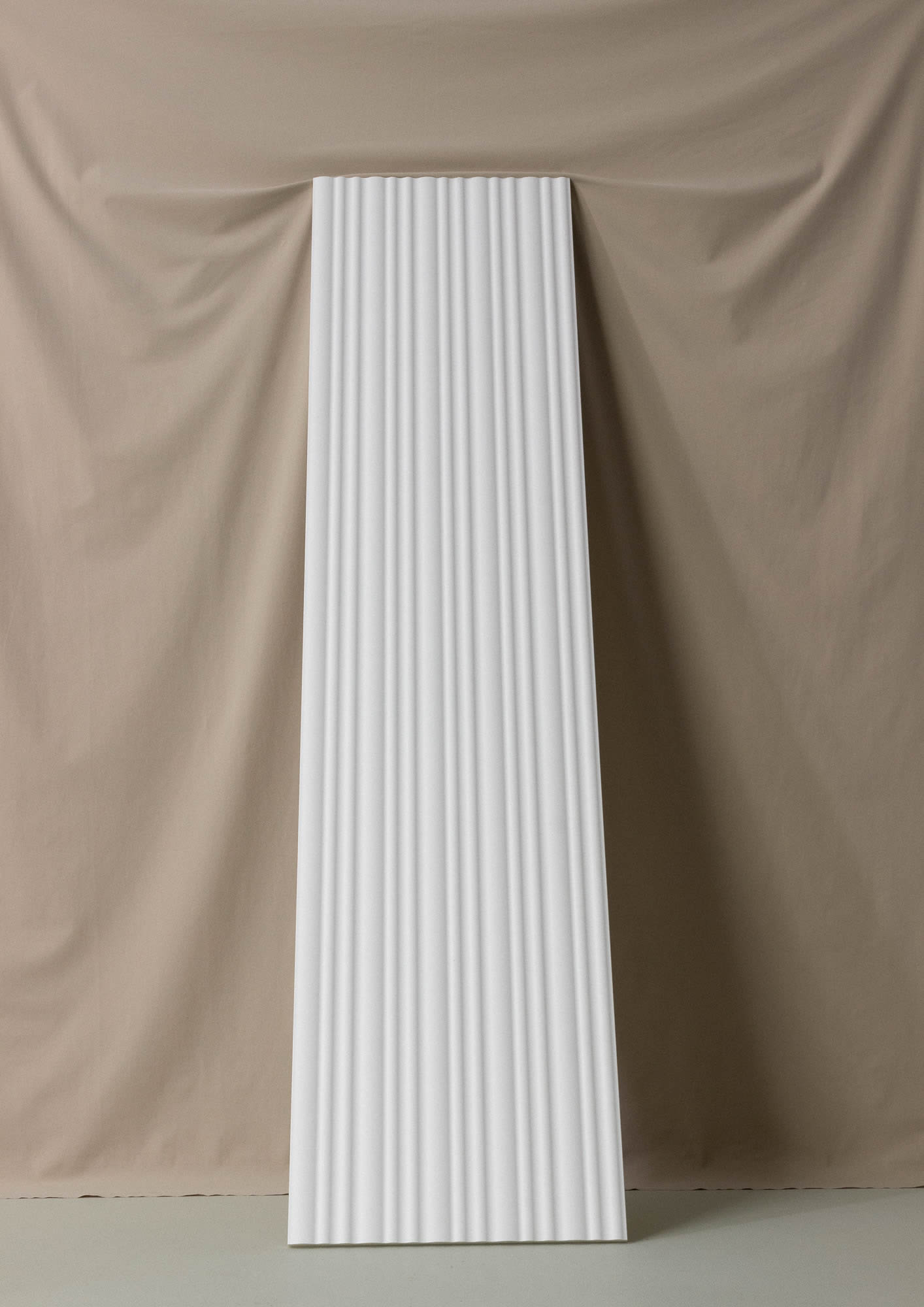 The CALANDO ARSTYL wall panel by NMC brings motion and lightness to modern interiors. Inspired by the musical term calando, which refers to a gradual decrease in tempo and volume, the design features a flowing structure that echoes soft waves. The surface resembles gentle ripples on water or fabric moved by a breeze. The rhythmic pattern creates a calm yet expressive visual effect with a natural feel. Suitable for both walls and ceilings, the panel adds a harmonious and ergonomic structure to any space. Cutting lines on the back allow flexible positioning and rearrangement of the wave motif, opening up many creative possibilities. Made from PU rigid foam, the panel is impact resistant, lightweight and easy to handle. It comes pre primed and can be painted in any colour to match your interior. CALANDO ARSTYL is ideal for residential or commercial spaces where design, softness and character come together.