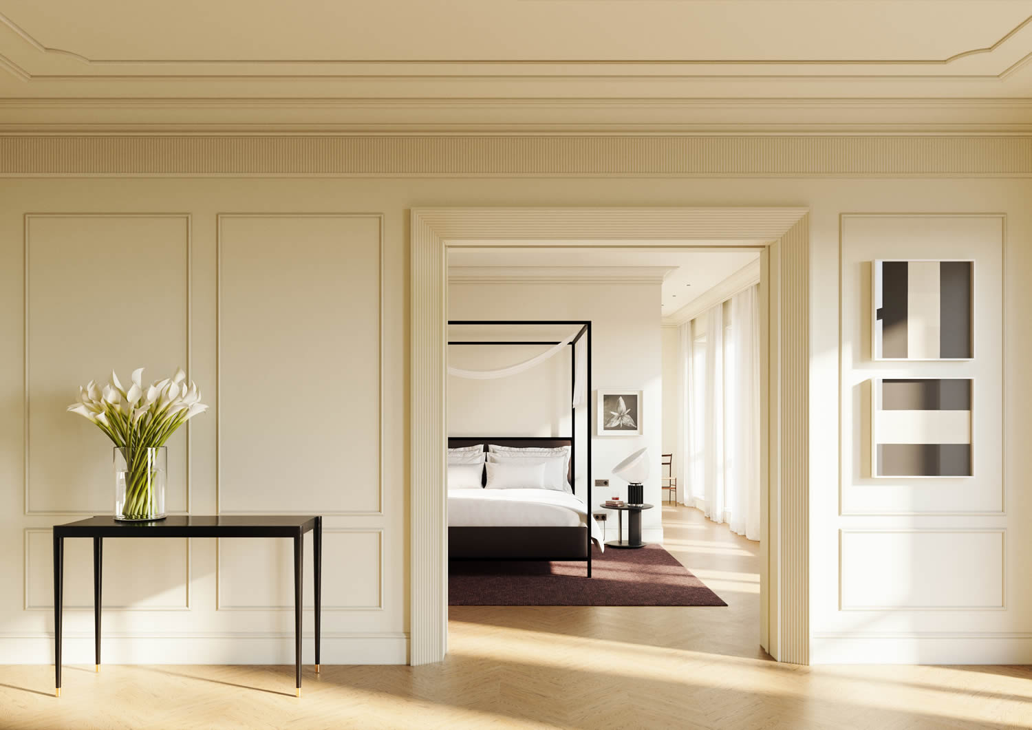 The 3D panel curved design NMC CANOPEE S wall panel is a high quality wall covering for contemporary interiors featuring an elegant design inspired by organic shapes. The surface displays gently curved lines flowing evenly across the panel creating a calm yet dynamic structure. This flowing form generates a three dimensional effect that interacts with light to produce subtle shadow variations and impressive visual depth. The motif recalls natural movements such as soft waves or curved leaf forms bringing a harmonious and refined ambiance to living rooms bedrooms hallways and open plan spaces. It is equally suitable for commercial environments including hotels restaurants offices and reception areas where architectural accents are desired. Made from high quality polystyrene the WALLSTYL panel is lightweight yet impact resistant and moisture resistant making it suitable for kitchens and bathrooms provided there is no direct contact with water. The factory primed surface can be painted after installation in any chosen color allowing full customization of interior concepts. Installation is clean and efficient using appropriate adhesive and ensures precise alignment for a seamless overall appearance. The CANOPEE S wall panel can be installed across an entire wall or used as a targeted design feature and combines perfectly with additional profiles and decorative elements from Noel and Marquet. The combination of modern 3D structure functional durability and timeless curved aesthetics makes this wall panel a versatile solution for sophisticated interior architecture.