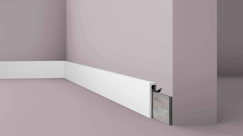 The CF2S WALLSTYL cover skirting board from NOËL & MARQUET offers a practical stylish solution to hide old or damaged skirtings with minimal effort while providing a clean transition between the wall and floor enhancing the look of any interior space. Manufactured from high quality extruded polystyrene this skirting board is both water resistant and impact resistant making it suitable for high traffic areas such as hallways living rooms kitchens and bathrooms. Its sleek design blends seamlessly with a range of interior styles from contemporary to classic and can be painted in any desired colour since it arrives primed and ready to finish. Installation is straightforward as there is no need to remove existing skirtings instead the CF2S is simply adhered with suitable mounting adhesive covering skirtings or tile edges up to around 15 millimetres thick. Its lightweight construction makes it easy to handle even for DIY enthusiasts and supports efficient renovation without unnecessary complexity. The moisture resistant properties further enable installation in rooms with higher humidity levels offering protection against everyday wear and tear. Overall the CF2S WALLSTYL cover skirting board provides a durable functional and aesthetically pleasing solution for wall finishing and floor transitions in residential or commercial spaces.